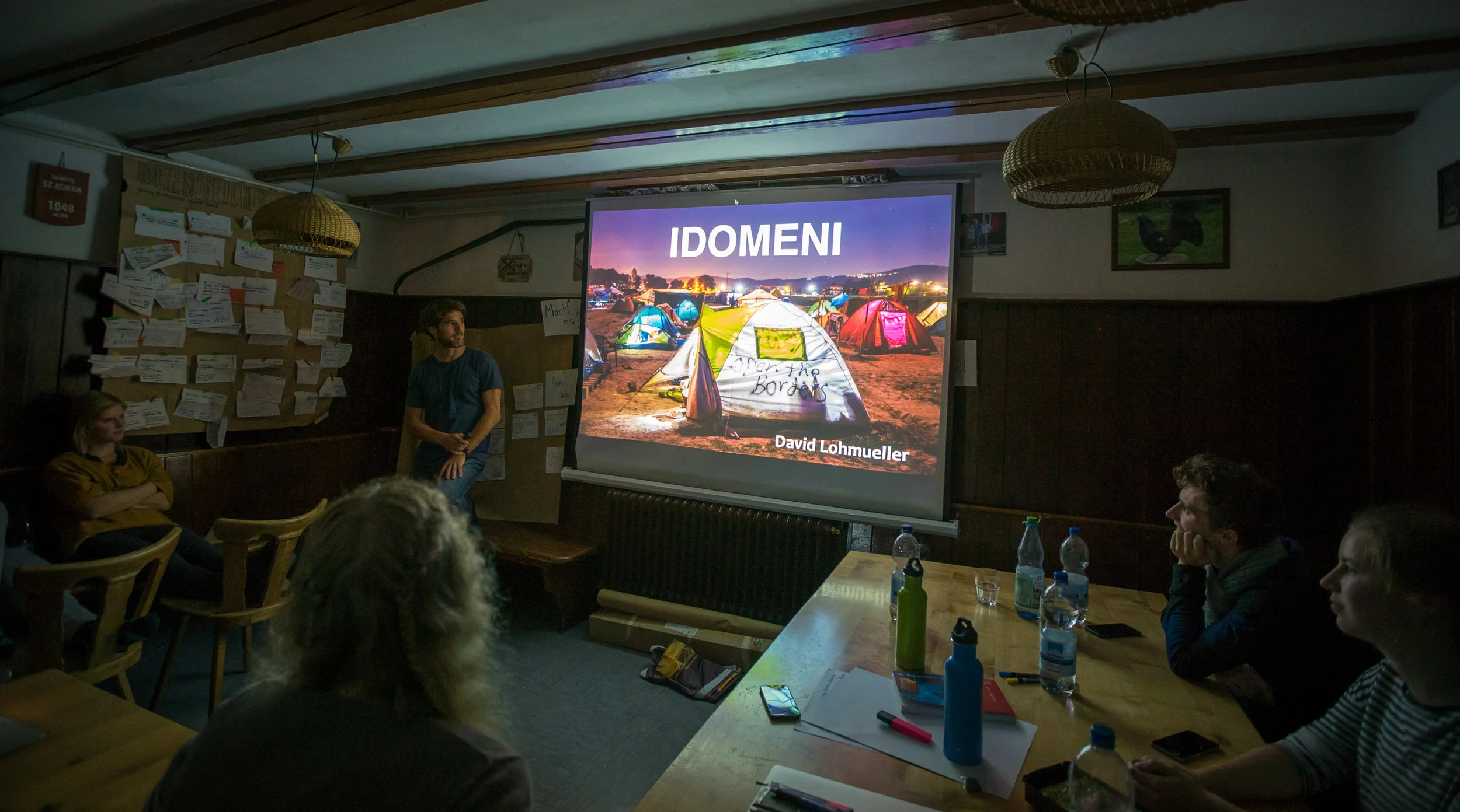 David hält einen ergreifenden Vortrag über die Flüchtlingssituation in Griechenland.