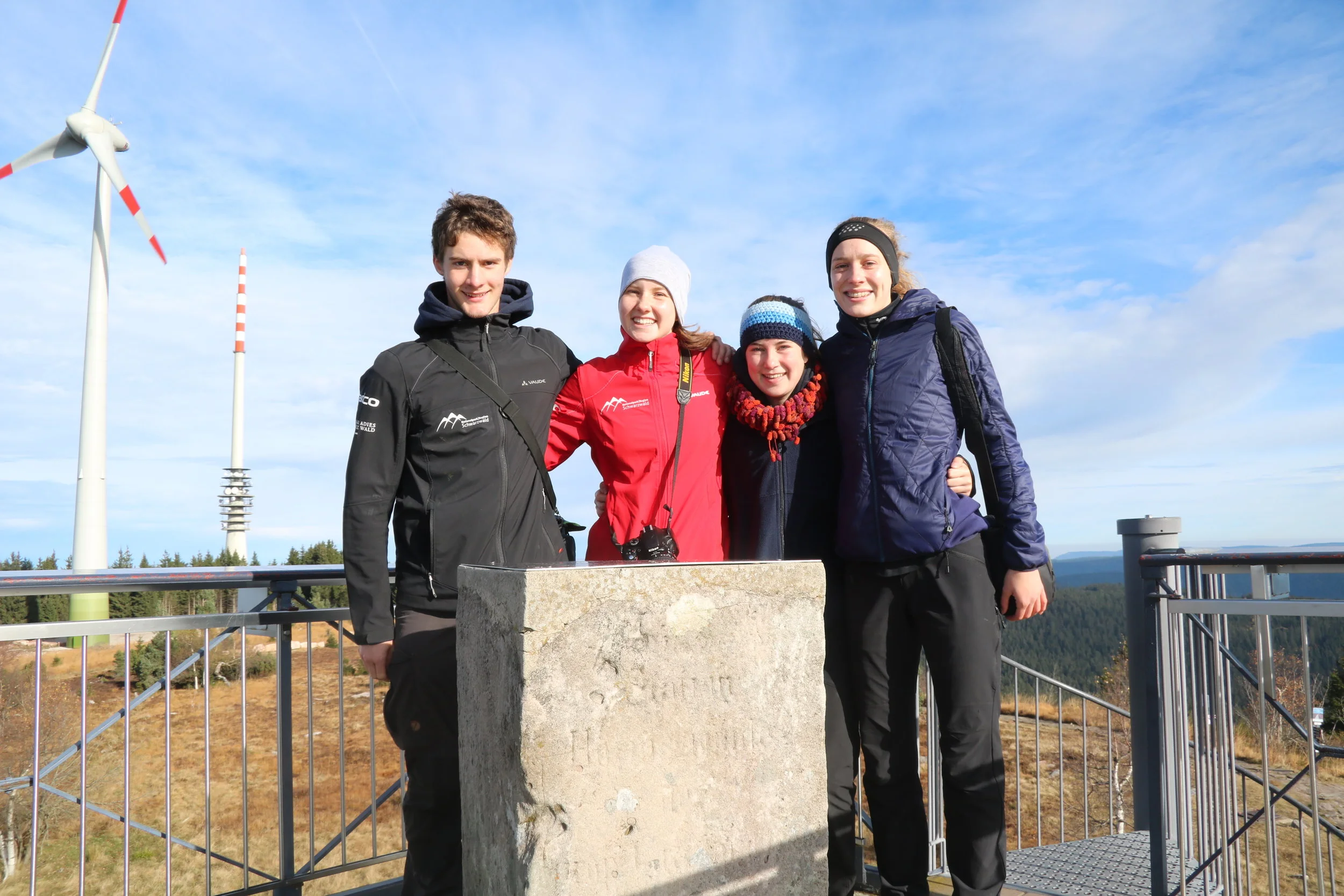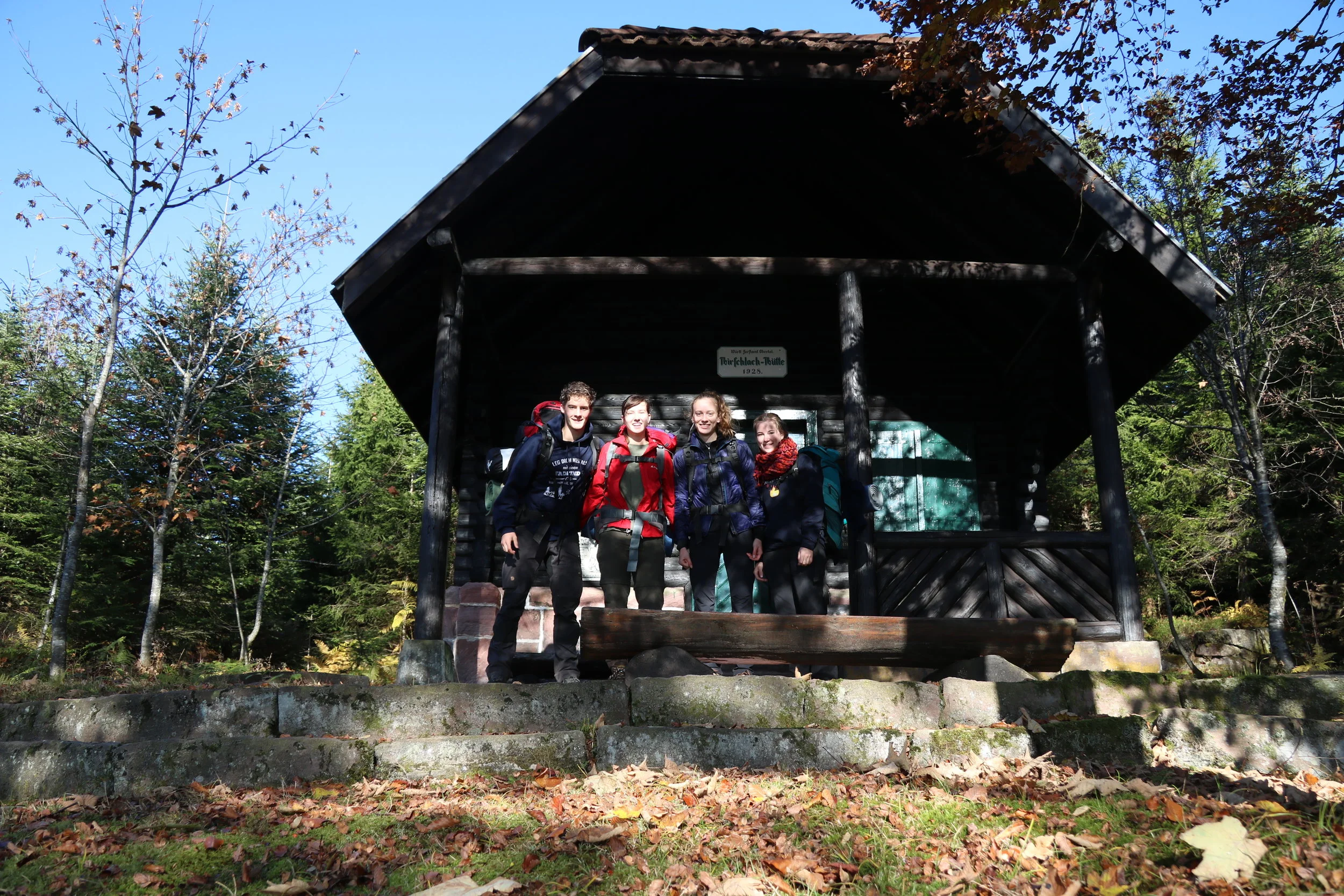 Am 30. Oktober ging die Reise für uns, Max, Anna, Fenja und Melina, endlich los. Die Wiedersehensfreude war riesig, ebenso wie die Vorfreude auf eine Woche Abenteuer. Bei schönstem Herbstwetter machten wir uns auf den Weg Richtung Baiersbronn. Gegen Nachmittag kamen wir an die Hirschlach-Hütte und beschlossen dort zu bleiben. Die Hütte selbst war zwar verschlossen, doch der Platz davor erbot sich als optimaler Zeltplatz. Ziemlich schnell wurde es dunkel und wir begannen das Zelt aufzuschlagen. Nach dem wir uns mit Tütensuppe und Polenta gestärkt hatten, krochen wir schon in unsere Schlafsäcke. Im Zelt war es gemütlich warm und wir spielten einige Runden Karten. Nach fast 12 Stunden Schlaf wurden wir von der Sonne geweckt. Der Anblick war grandios. Auf knapp über tausend Metern eröffnete sich uns eine atemberaubende Sicht auf das Nebelmeer.