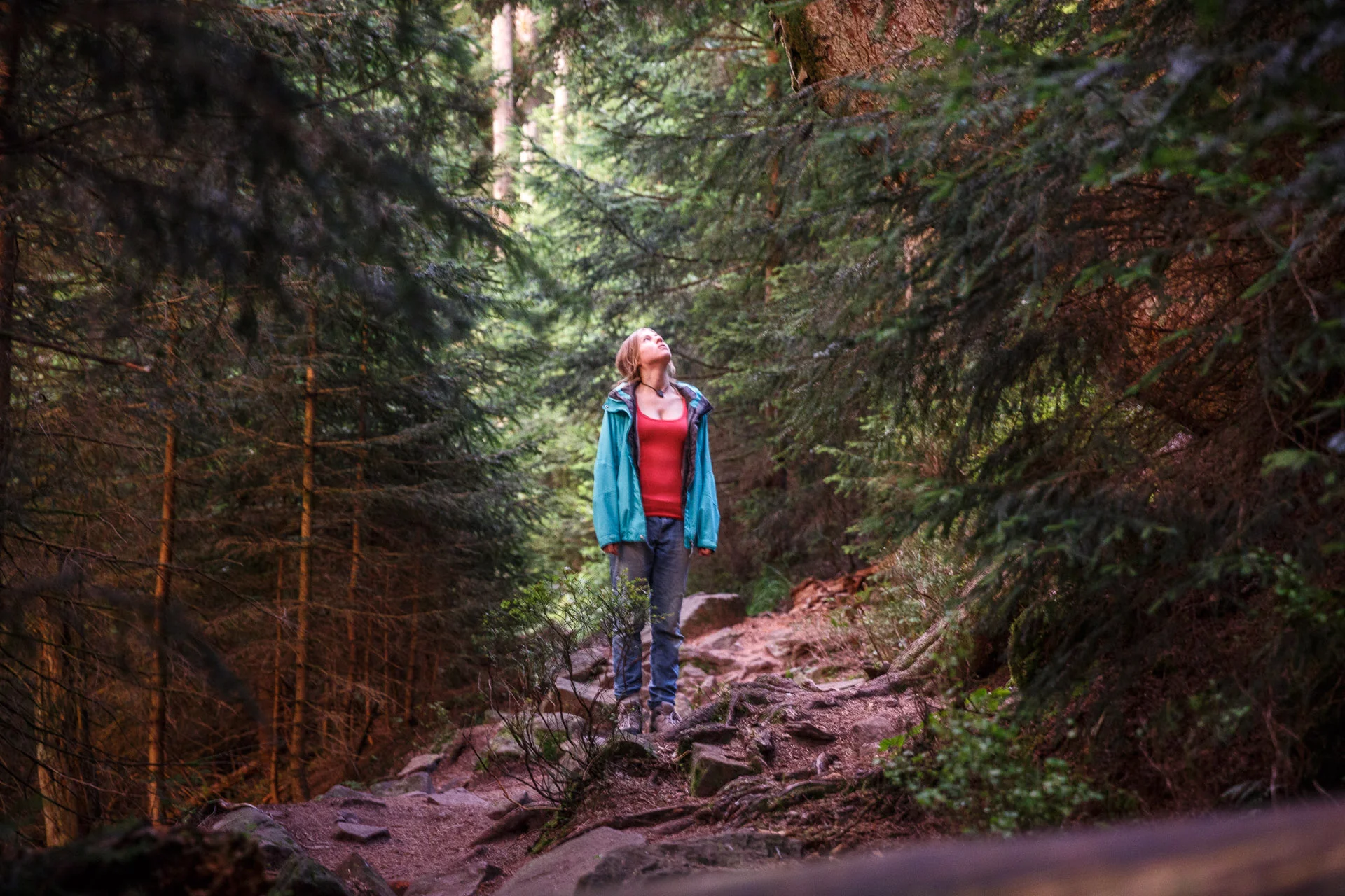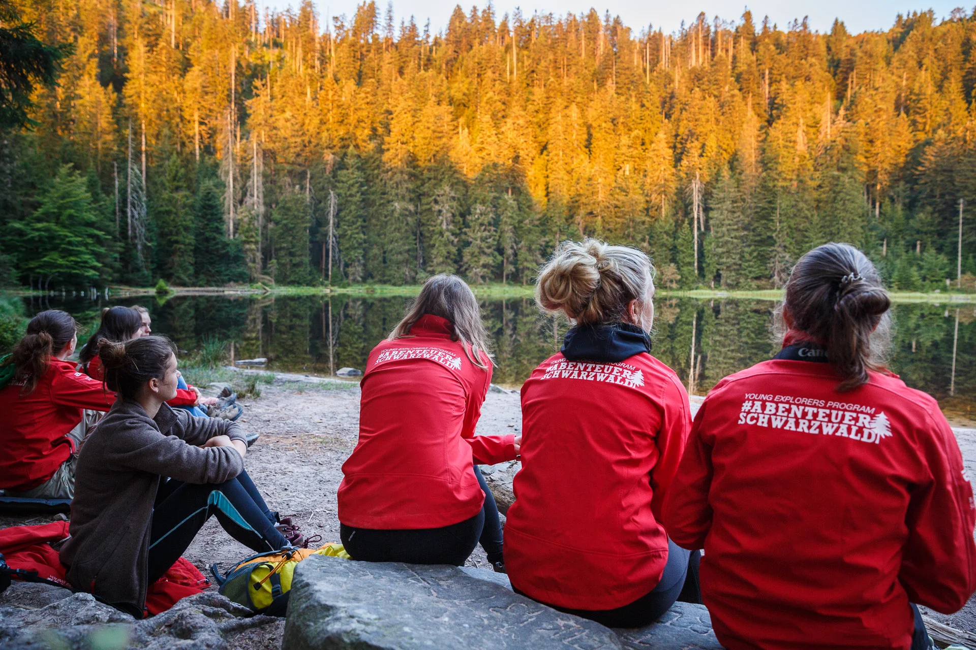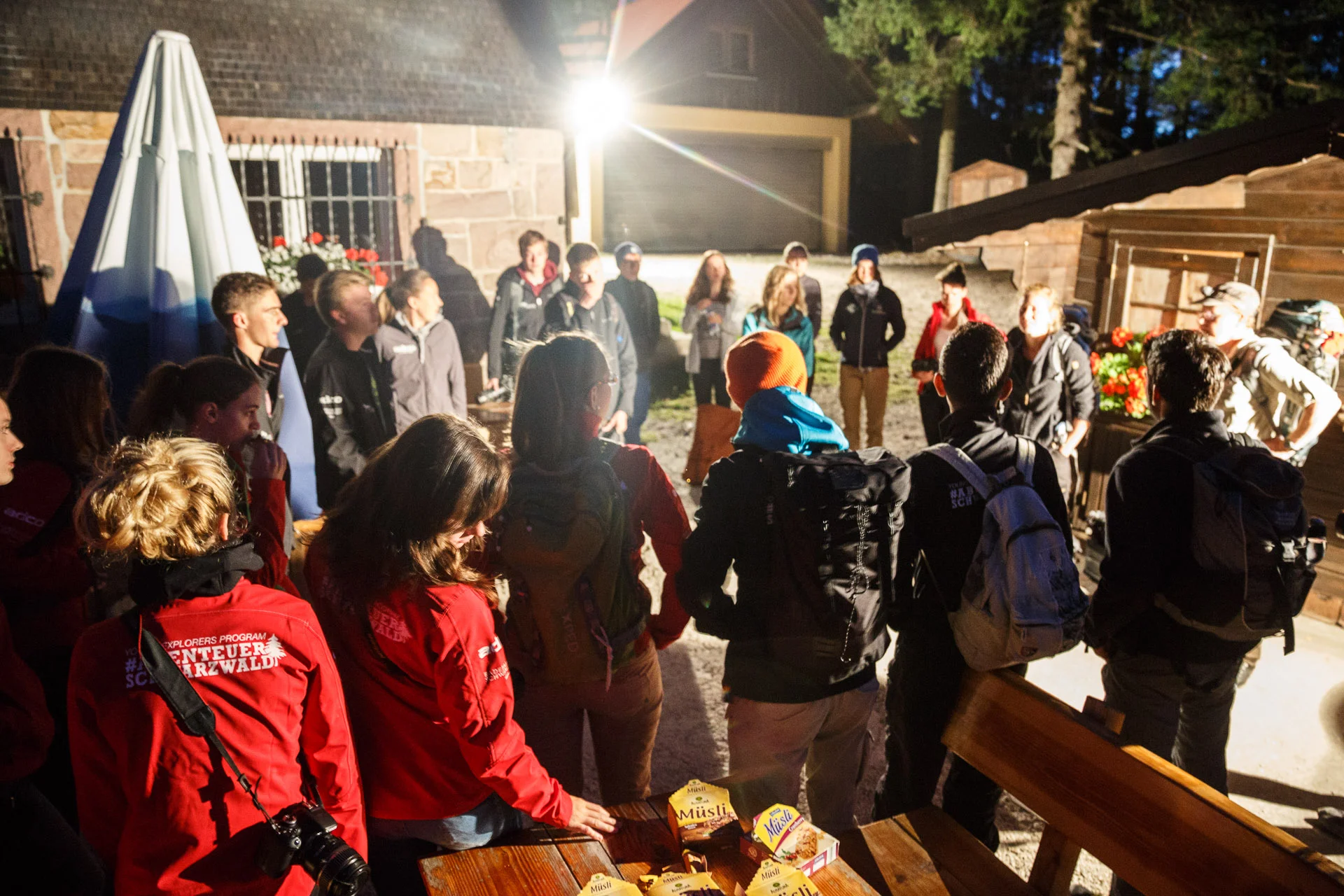 Es ist noch dunkel als wir uns auf den Weg zum Wildsee machen. Mit einem Müsliriegel als Stärkung und ohne Taschenlampenlicht durch den noch schlafenden Wald dem Sonnenaufgang entgegen. Mit offenem Blick für die seit 104 Jahren unberührte Natur des Nationalparks Schwarzwald machten wir uns einzeln auf den Abstieg zum See. An besonders schönen Aussichtspunkten lagen Zitate, die uns aufmerksam auf die Schönheit der Natur machten. Zudem war direkt am Wegesrand die älteste Fichte, der „Großvaterbaum“, und ein paar Meter daneben die zweit älteste Fichte des Schwarzwaldes.