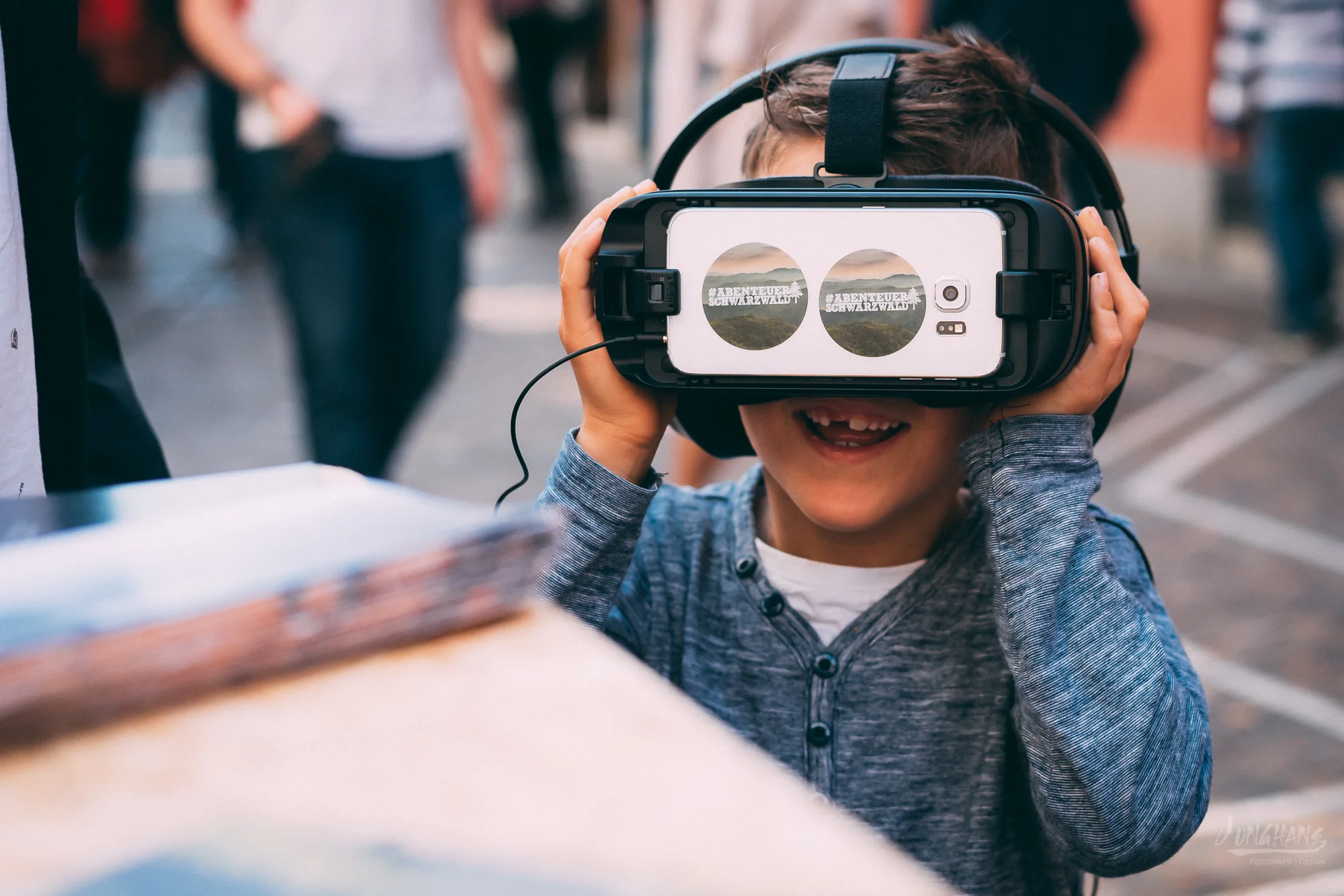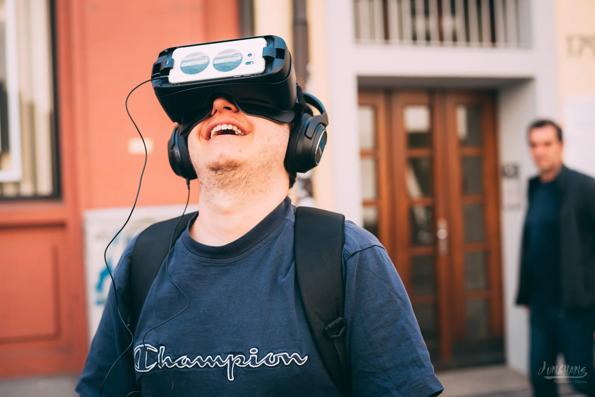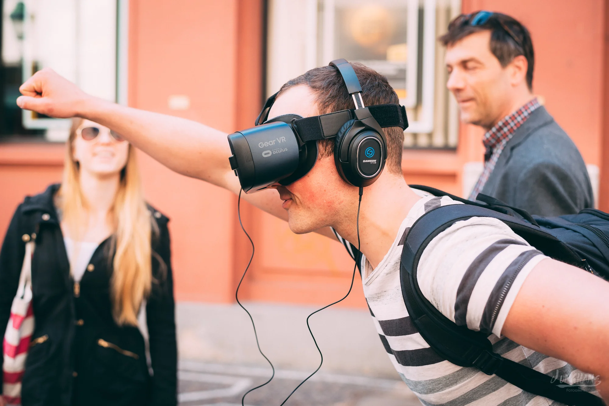 . . . und voller Begeisterung die VR-Brille ausprobiert.