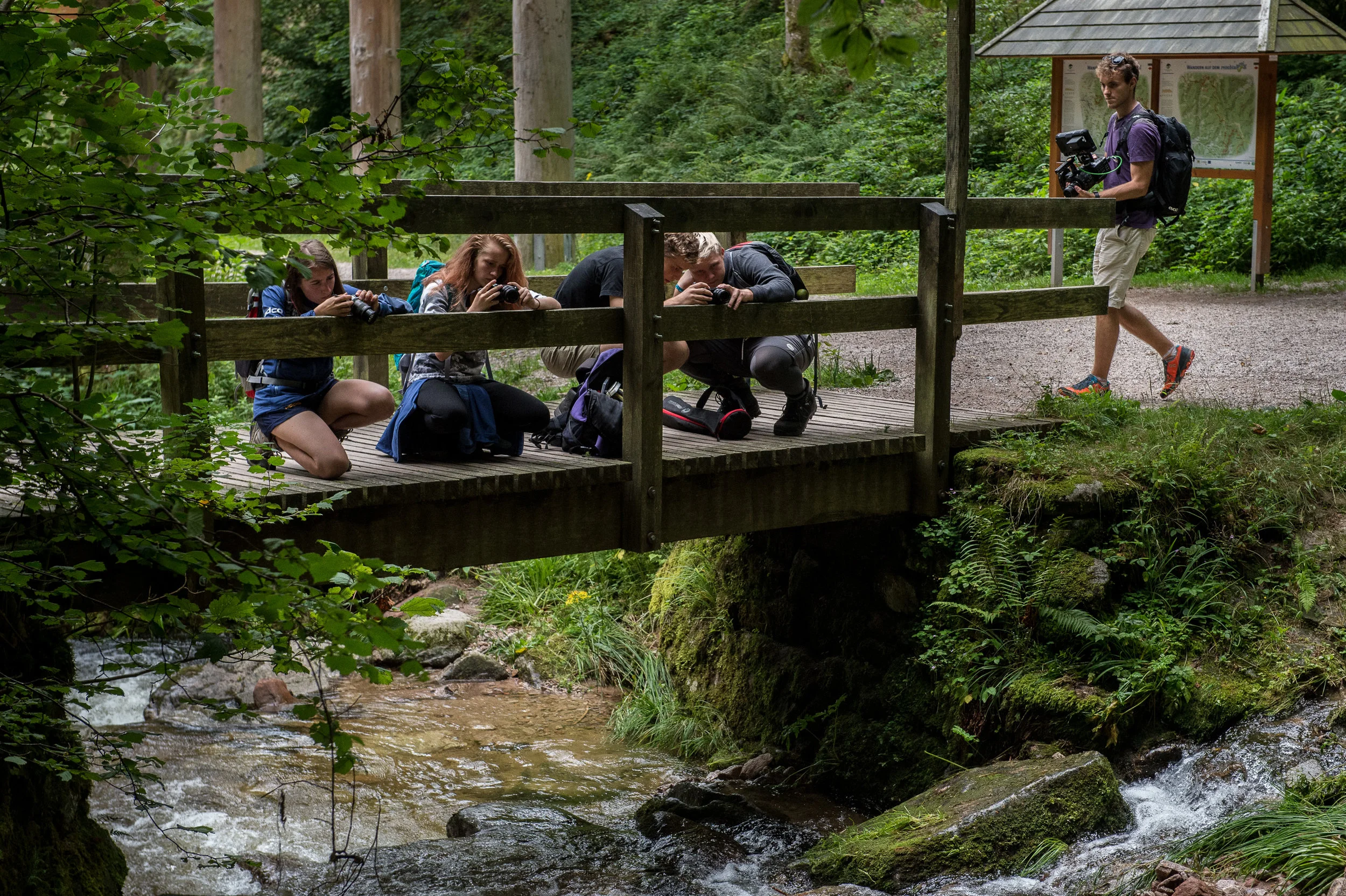 Im Anschluss erforschen wir die Wasserfälle auf eigene Faust mit allen Sinnen und durch die Kameralinse. Dabei sind wir ständig auf der Suche nach Motiven für die diesjährigen Kreativwettbewerbe. Bei diesen geht es vor allem darum, den Schwarzwald anhand der vier Elemente Wasser, Luft, Erde und Licht filmisch und fotografisch zu porträtieren. Umgeben vom Rauschen des Wassers können wir unser neues Wissen über Blendenöffnung, Verschlusszeit, Bildkomposition und Co. erproben.