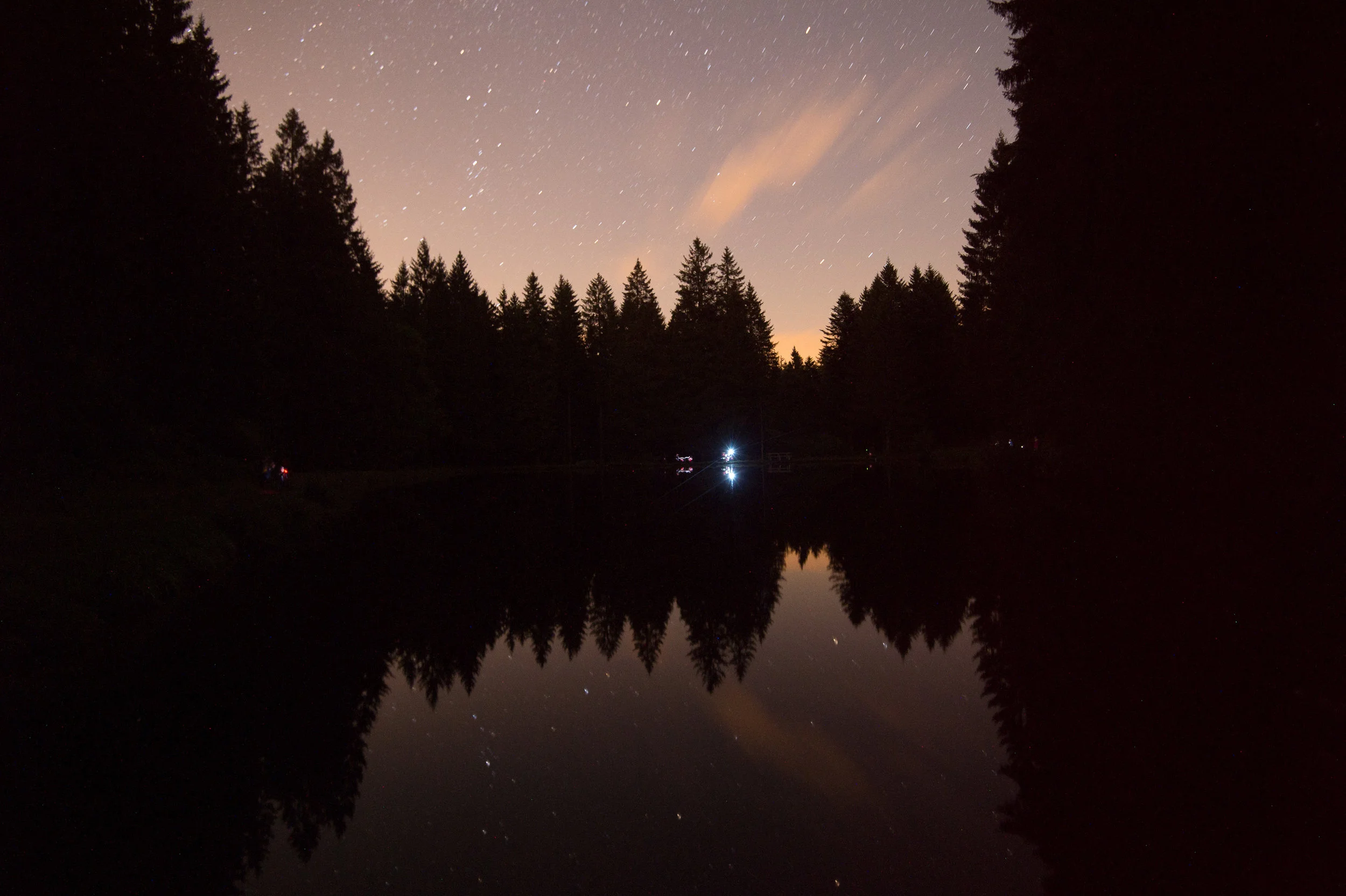 Auch wenn es schon spät ist, machen wir uns noch einmal auf, den Sternenhimmel zu fotografieren. Mit tiefschwarzen Tannen im Vorder- und spiegelglatter Seeoberfläche im Hintergrund entstehen atemberaubende Aufnahmen des Firmaments und der Milchstraße. Für viele von uns sind es die ersten Nachtaufnahmen und nur wenige hatten bisher eine solch klare Sicht auf unsere Galaxie.
