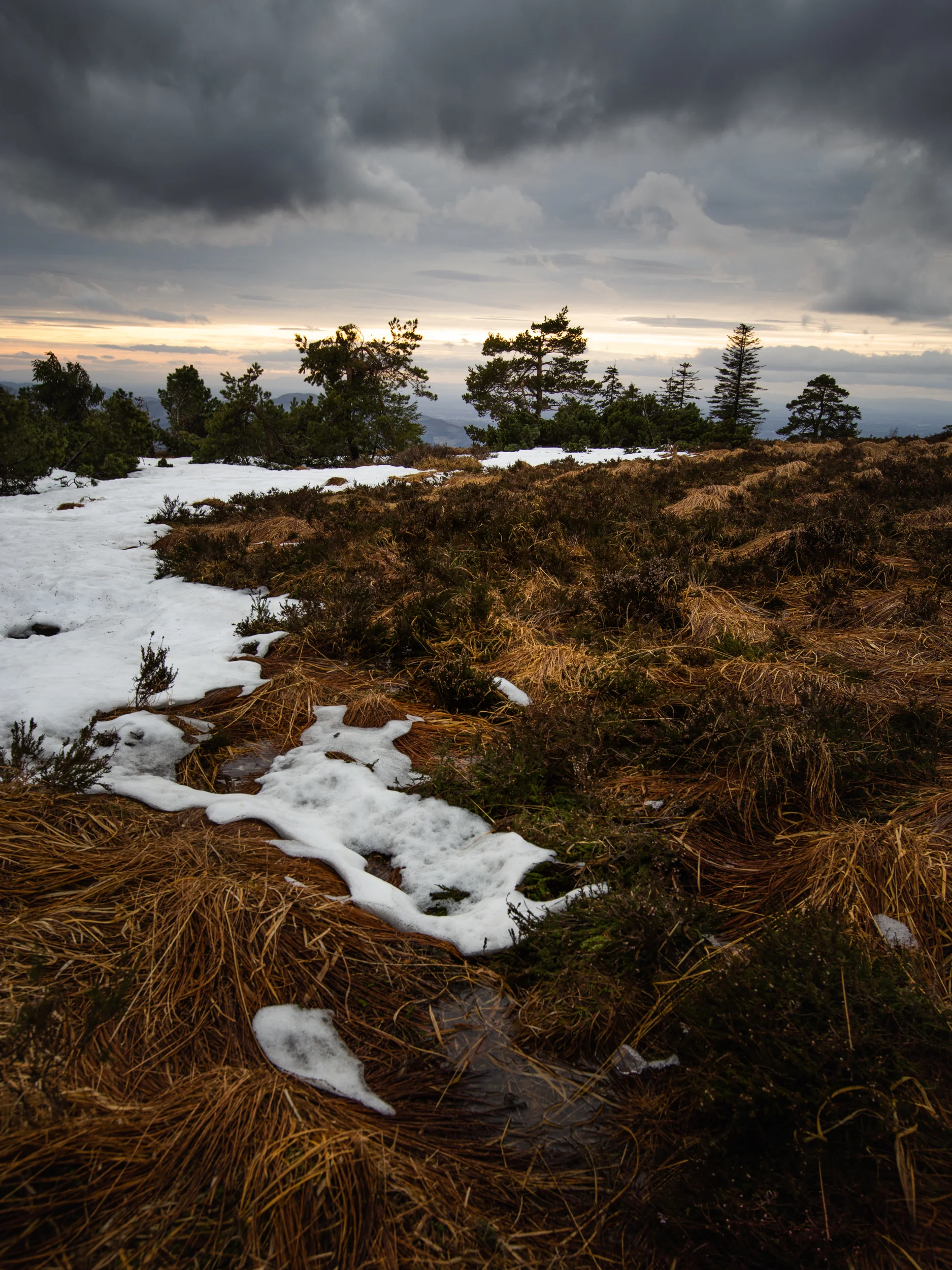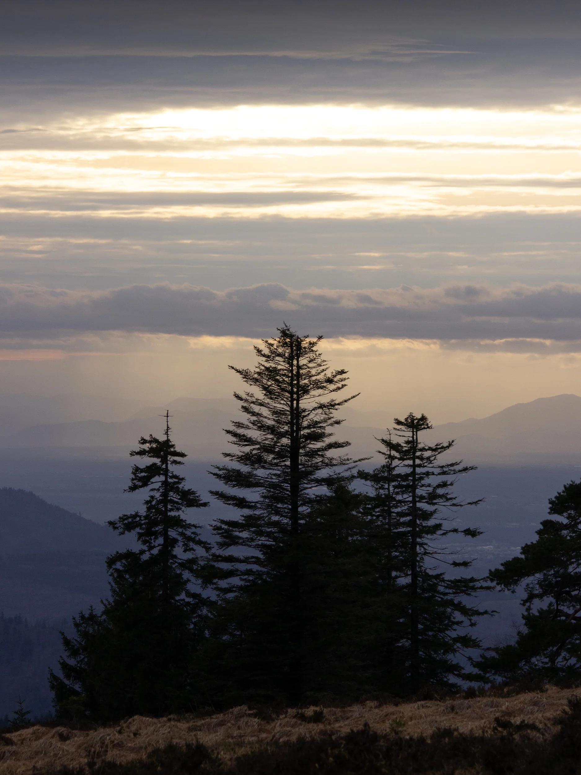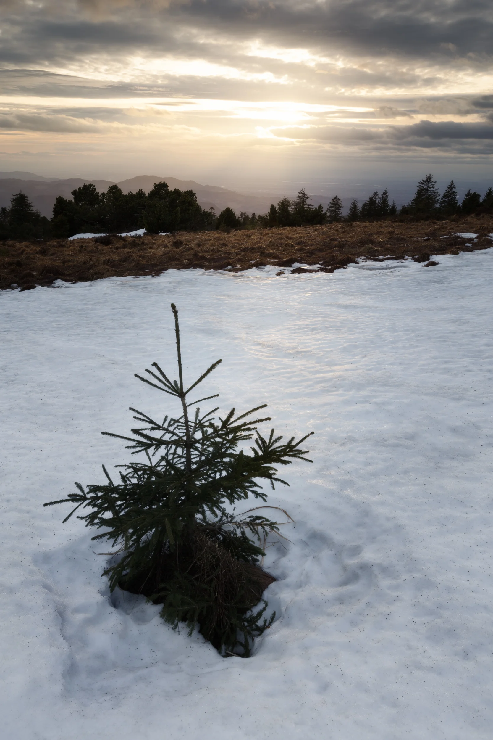 Nach der kleinen Wanderung um den Schliffkopf stand dann das Fotografieren des Sonnenuntergangs auf dem Programm. Leider verhinderte die dichte Wolkendecke in Westrichtung einen bunten Himmel, für einen kurzen Moment schaffte es die Sonne dann aber doch noch durch eine Wolkenlücke und hellte die Landschaft etwas auf, sodass wir noch ein paar schöne Fotos schießen konnten.