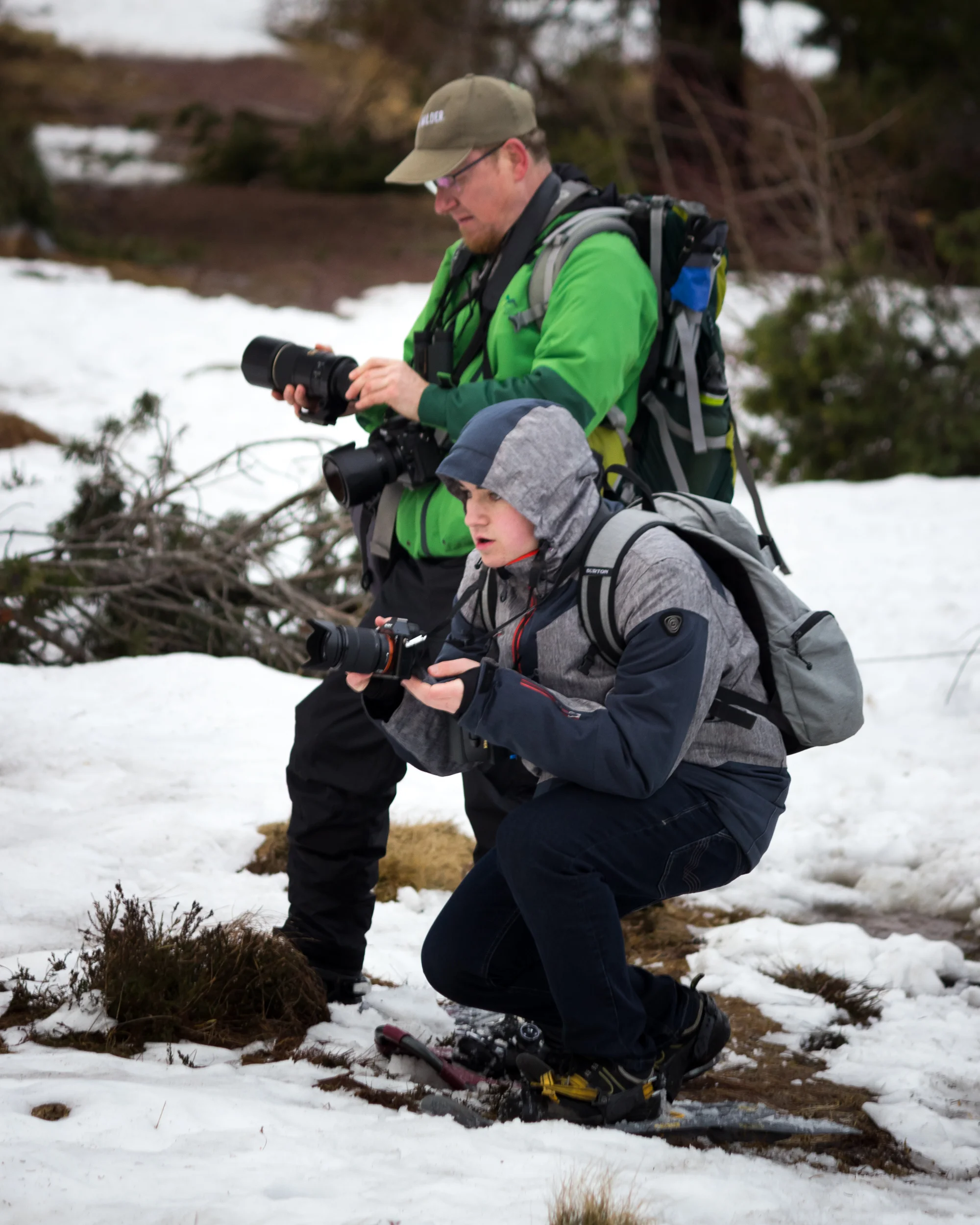 Begleitet wurden wir von Nationalparkranger Luis, der uns während der Wanderung viele interessante Infos über die Vegetation und die Tierwelt im Nationalpark erzählte. Mit Ferngläsern und der Kamera erkundeten wir die noch mit der letzten Schneeschicht bedeckte Winterlandschaft und sahen neben schönen Aussichten auf die Höhen des Schwarzwalds auch einige interessante Vogelarten. Für einen kurzen Moment öffnete sich sogar die Wolkendecke am Horizont und ein Teil der Alpen war sichtbar.