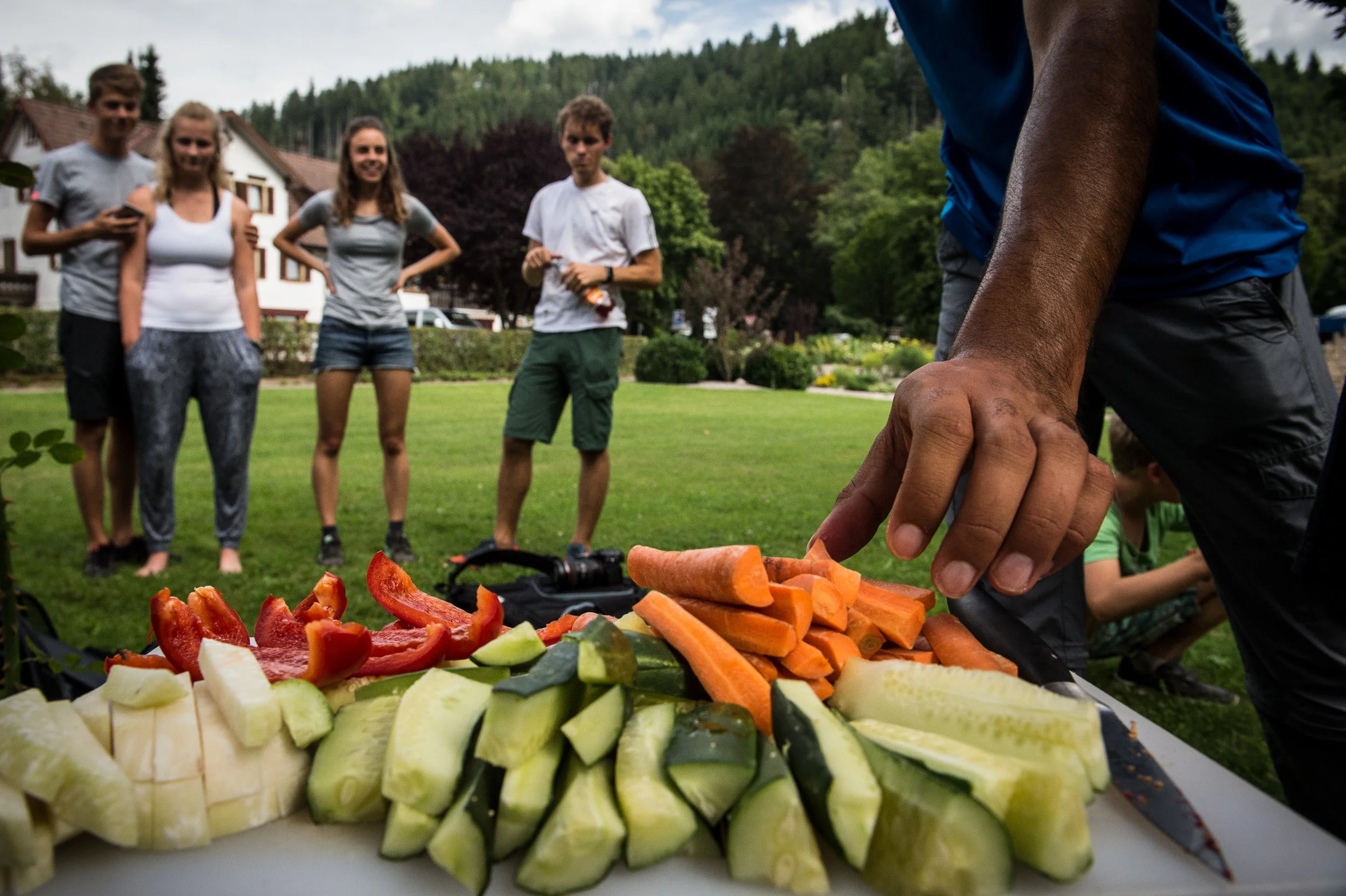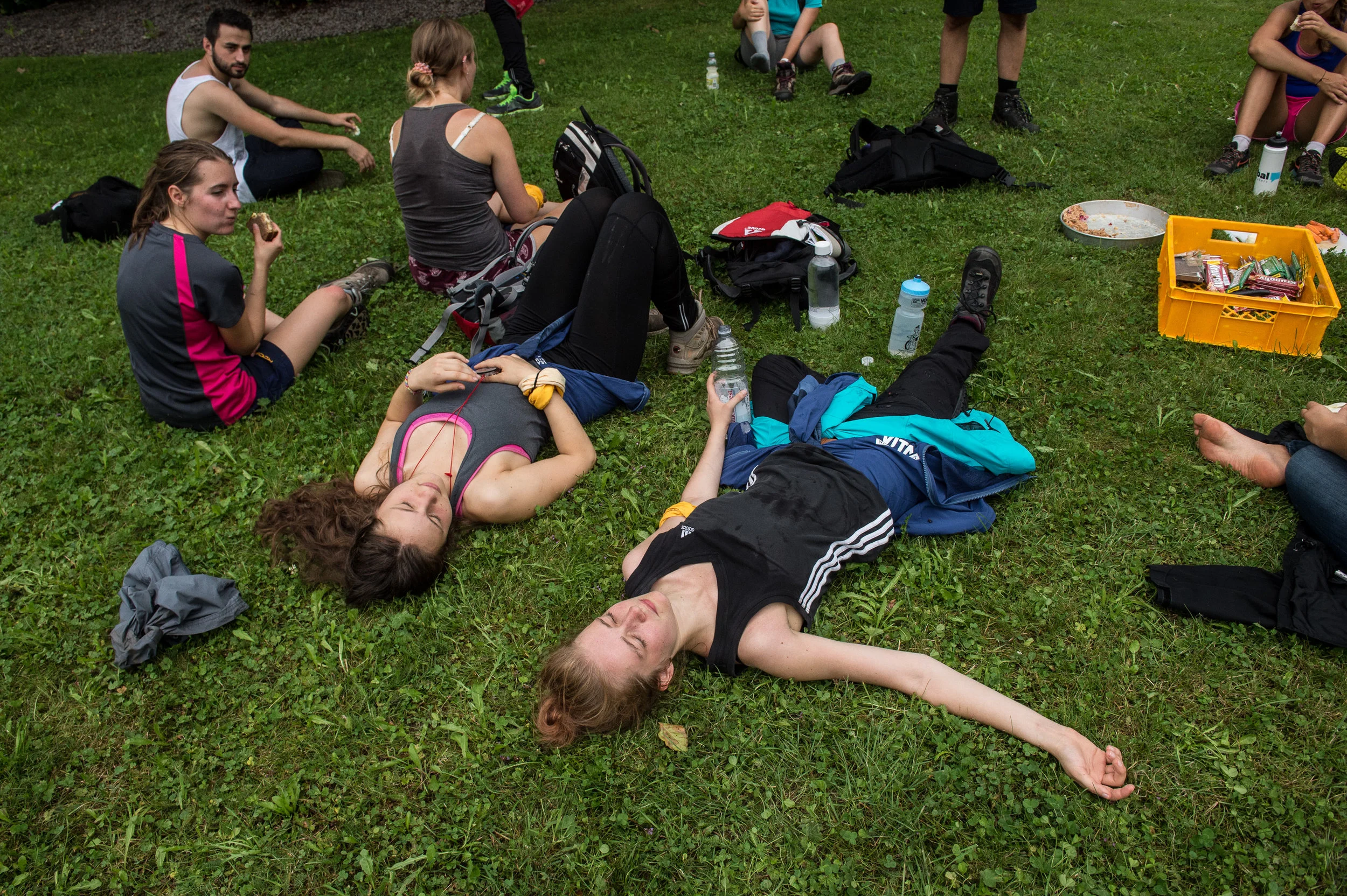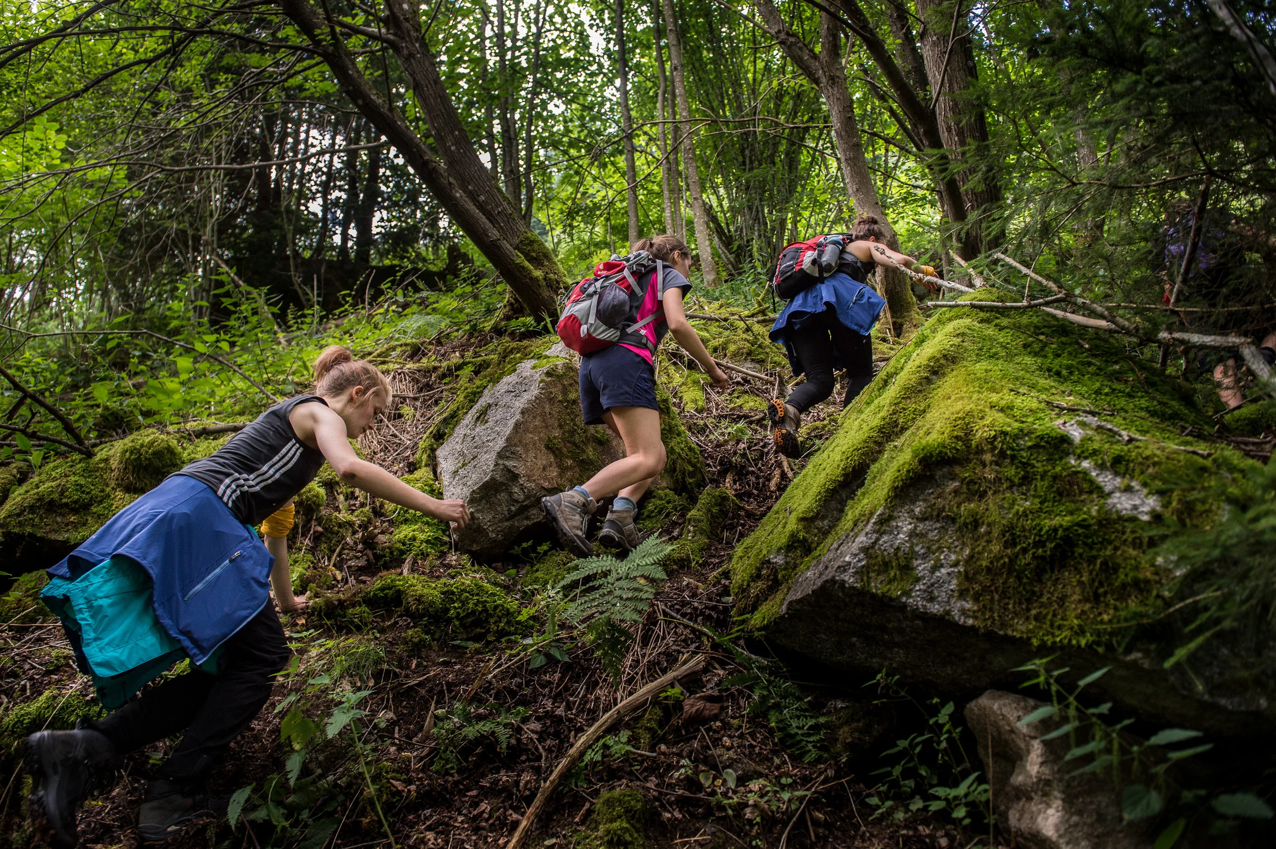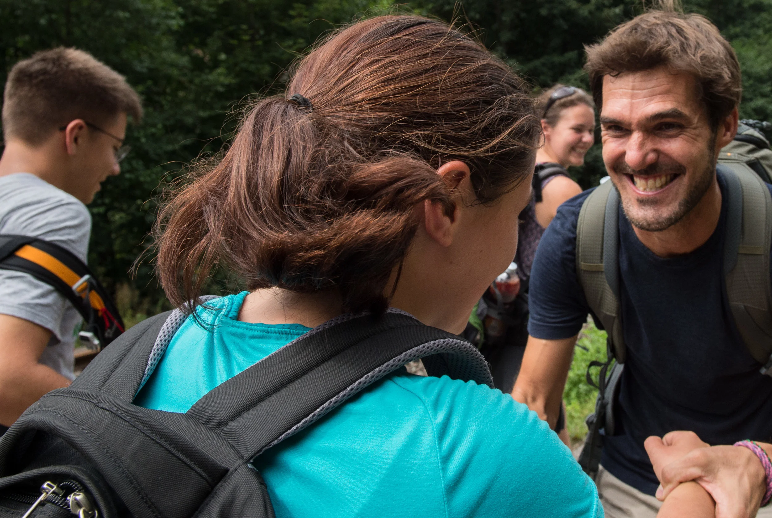 Zuerst mussten wir den Philippenkopf ausfindig machen. Nachdem wir in einem weiteren Rätsel die Nummer des Teufels auf den Kopf gestellt hatten, ging es weiter zum Diebaukopf (auf 999 Höhenmetern). Von dort aus bekamen wir die Challenge mit verbundenen Augen zum Blindsee zu laufen. Vertrauen und Teamarbeit waren dabei unentbehrlich. Das nächste Rätsel führte uns zum Schurmsee. Dort mussten wir vier pantomimische Aufgaben lösen, bevor wir unser nächstes Ziel gesagt bekamen. Auf dem Weg nach Schönmünzach ging es auf einem steilen Weg ins Tal. Dort war der erste Checkpoint. Nach einer kurzen Pause im Park ging es auch schon weiter Richtung Staumauer - Schwarzenbach Talsperre. Nach einer 60-sekündigen Yogaübung auf der Talsperre ging es nach einem Stückchen Schokolade sofort weiter. Team 1 übernahm mit 15 Minuten Vorsprung die Führung, dicht gefolgt von Team 4. Einmal um den Stausee herum und weiter zum Herrenwieser See. Barfüßig liefen wir eine Runde um den See.