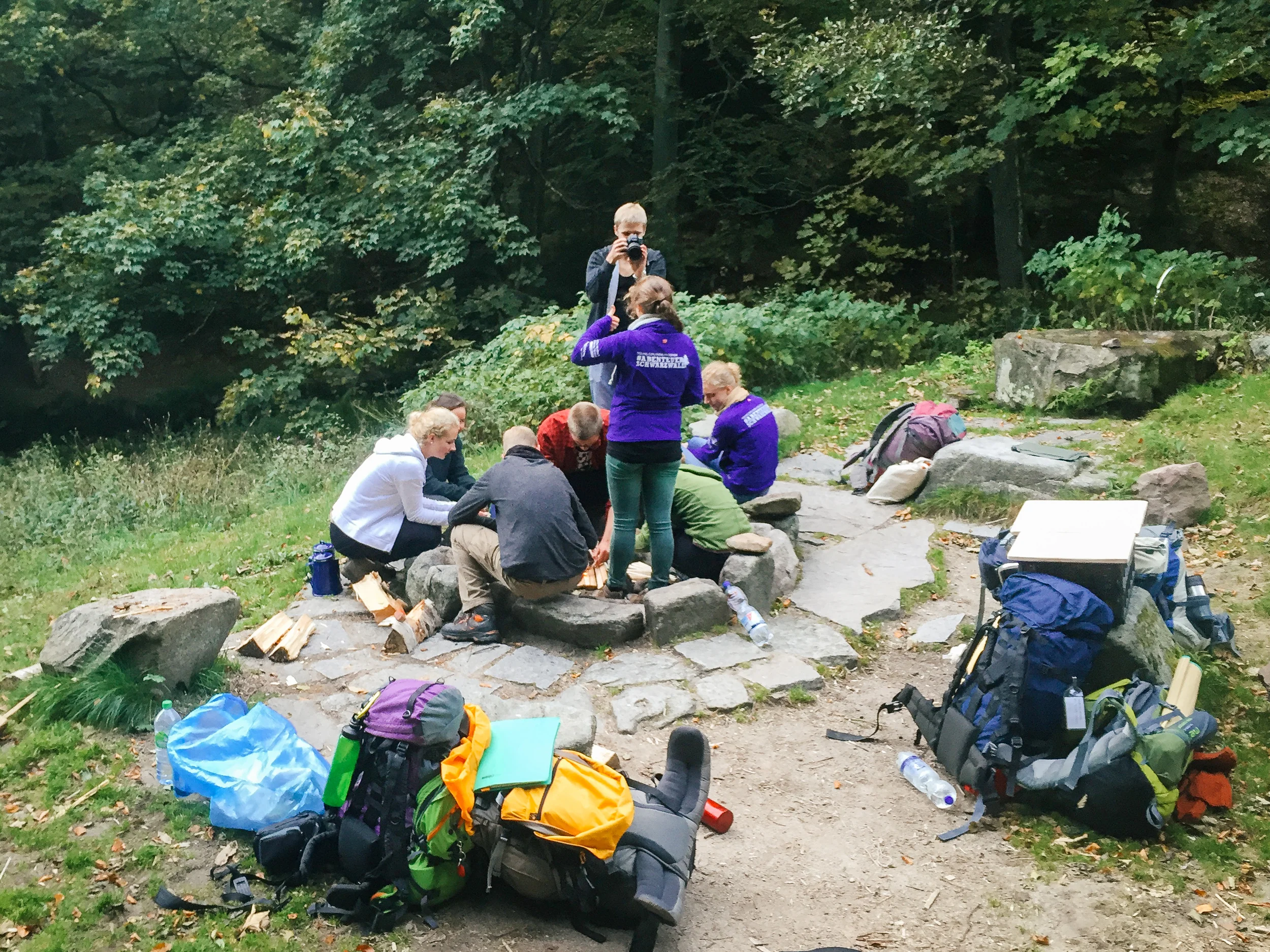 Um den besonderen Ort wirklich kennenzulernen, suchte sich jeder einen eigenen Ruheplatz, an dem man eine Weile verharren und nur die Natur auf sich wirken lassen konnte. Eichhörnchen, Vögel und Hasen wurden gesichtet, doch noch etwas Wichtigeres merkte jeder einzelne Young Explorer an seinem Ruheplatz erneut – wie schön und schützenswert die Natur des Schwarzwaldes ist und wie viel sie uns inzwischen bedeutet. Schließlich bereiteten wir am wärmenden Lagerfeuer unser Abendessen zu: Selbstgemachte Pizza und Stockbrot. Währenddessen unterhielten wir uns in entspannter Lagerfeueratmosphäre über den Nationalpark, unsere Aufgaben als Nationalpark-Botschafter und die echte Wildnis. Trotz der inspirierenden Gespräche gewann die Müdigkeit langsam Überhand. Nach und nach krochen wir in unsere Schlafsäcke und schliefen mit den Sternen über uns ein.